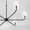 Embodying true minimalist form, the Brody Chandelier brings sleek, simplified style. The Matte Black finish enhances the classic look of the white fabric shades to deliver sophisticated, less-is-more design. DIMENSIONS: Overall: 47"W x 21.25"H; Adjustable Hanging Height: 24.75" - 147.25"; Includes 120" Chain; 180" Wire. DETAILS: Crisp fabric shades accents the minimalist silhouette for a sophisticated, simplified style. FINISH: Matte Black is a powder coated, muted, neutral tone. BULBS: Designed to be dimmable and LED/CFL/Incandescent bulb compatible, this fixture uses 6 - 60 Watt (max) E12 Candelabra base bulbs (not included). It's shown here with a B10 lamp. FEATURES: Rated for dry locations; includes a 1-Year Manufacturer Warranty.