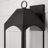 Enhance your exterior with the Burton Low Light Large Wall Lantern. The arched panes and tented top in a Black finish beautifully blend classic style with modern appeal. This fixture is designed for minimal light emissions and is part of ourRain or Shine Collection and backed by our five-year warranty. DIMENSIONS: Overall: 9.75"W x 26.25"H x 11.5"E; Backplate: 6.75"W x 9.5"H x 1"E DETAILS: The tented top and arched panes paired with Clear Glass panels create a classic and clean look. The Night Sky friendly fixture is designed for minimal light emission. Bottom is open for easy access to bulb. FINISH: Part of the Rain or Shine series, the Black finish is a neutral, dark tone with a slightly coarse texture. BULBS: Designed to be dimmable and LED/CFL/Incandescent bulb compatible, this fixture uses 1 - 7 Watt (max) GU10 Twist Lock base bulbs (not included). It's shown here with a GU10 lamp. FEATURES: Rated for Wet locations; includes a 5-Year Manufacturer Warranty Against Rust and Fading