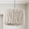 Each piece of the natural eucalyptus used to create the drum shape shade in this 4-Light Pendant is one-of-a-kind and hand-applied for a sculptural statement. APPLICATIONS: Rated for dry locations, perfect for a hallway/stairway, foyer/entryway, kitchen, home office, dining room, living room or bedroom. Artisans hand craft amazing eucaluptus wood into a one-of-a-kind pendant finished in brushed pewter EASY TO INSTALL: Replacing an existing fixture is easy with the included instructions and can be finished in as little as 15 minutes with a few simple hand tools. VERSATILE: Dimmable and LED/CFL/Incandescent compatible, uses four 100-Watt (max) E26 medium base bulbs (Not Included) DIMENSIONS: Adjustable Height (from 24.75 inch to 147 inch), 25 inchW x 21 inchH; includes 10' of chain, 15' of wire RELIABLE: Includes 1-Year Limited Manufacturer's Warranty. Warranty: 1 Year Room Recommendation: Kitchen/Bathroom/Home Office/Powder Room/Dining Room/Foyer/Entryway Mounting Direction: Horizon