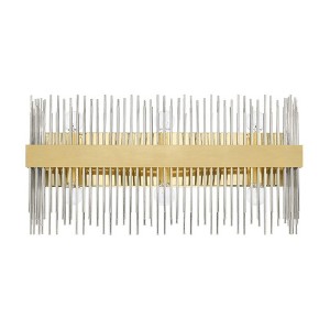 The gorgeous Lena 6-light vanity fixture in Fire and Ice finish boasts style that wakes up your bath! Featuring a cluster of slender rods enveloped by a band, this bath light offers an interplay of Polished Nickel and Capital Gold finishes for a dramatic, glam update. Try this vanity light paired with a mirror in either a gold or chrome frame for a cohesive look, or black frame for a hint of Hollywood Regency inspired style. Warranty: 1 Year Room Recommendation: Bathroom/Powder Room Mounting Direction: Up