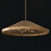 Earthy and elegant with a modern cone silhouette, the Maya Open Pendant uses natural materials to enhance any space. The combination of Light stained mango wood and hand-wrapped Natural Jute Rope creates high design with artisan appeal, while the Matte Brass finish adds a touch of shine. DIMENSIONS: 31"W x 7.50"H; Adjustable Hanging Height: 14.25" - 65.25"; Includes 12" Chain; 120" Wire and Rods Included 6"(1),12"(1) & 18"(1)L / DETAILS: Hand-wrapped Natural Jute Rope in a wide cone silhouette is paired with the slightly distressed Patinaed Brass finish, creating organic glamour. / FINISH: A mixed-material finish of natural jute rope, light stained mango wood, and the subtle shine of the light, honey-toned matte brass. / BULBS: Designed to be dimmable and LED/CFL/Incandescent bulb compatible, this fixture uses 4 - 60 Watt E12 Candelabra base bulbs (not included). / FEATURES: Rated for Dry Locations; Includes a 1-Year Manufacturer Warranty.. ,