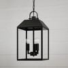 The Nelson Hanging Lantern seamlessly blends modern style with traditional details. The clear glass panes are framed by the rectangular forms for a distinct aesthetic, rounded out with the arched ring and knob on top, all in our signature Black finish. Part of our Rain or Shine Series and backed by our five-year warranty. DIMENSIONS: 9.50"W x 19.50"H; Adjustable Hanging Height: 23.5" - 85.5"; Includes 60" Chain; 180" Wire / DETAILS: The Black finish punctuates the rectangular form, while the clear glass illuminates a warm welcome. / FINISH: Part of the Rain or Shine series, the Black finish is a neutral, dark tone with a slightly coarse texture. / BULBS: Designed to be dimmable and LED/CFL/Incandescent bulb compatible, this fixture uses 3 - 60 Watt E12 Candelabra base bulbs (not included). / FEATURES: Rated for Damp Locations; Includes a 5-Year Manufacturer Warranty Against Rust and Fading.. ,