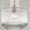 Fluted glass and a tulip silhouette create organic intrigue with the Nyla Pendant. The warmth of the Aged Brass finish reflects a sleek and stunning style. DIMENSIONS: Overall: 11"W x 14.75"H; Adjustable Hanging Height: 20" - 65"; Includes 12" of chain and 120" of wire; Rods Included 6"(1), 12"(1) & 18"(1)L DETAILS: The tulip shaped, clear glass is adorned with a fluted pattern and cloche opening. FINISH: Smooth to touch, the Aged Brass finish is a warm, honey-gold with subtle black undertones. The scouring technique creates a brushed visual texture and creates a refined, aged look. BULBS: Designed to be dimmable and LED/CFL/Incandescent bulb compatible, this fixture uses 1 - 100 Watt (max) E26 Medium base bulb (not included). It's shown here with a G25 lamp. FEATURES: Rated for dry locations; includes a 1-Year Manufacturer Warranty. Mounting Direction: Down Canopy Included: Yes Canopy Diameter: 5.00 Chain Length: 12.00 Rod Length(s): 1-6, 1-12, 1-18 Shade Included: Yes Sha