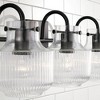 Fluted glass and a tulip silhouette create organic intrigue with the Nyla 3-Light Vanity. The warmth of the Aged Brass finish reflects a sleek and stunning style. Also available in a 2-Light. DIMENSIONS: Overall: 24.25"W x 9"H x 8"E; Backplate: 5"W x 5"H x 1"E DETAILS: The tulip shaped, clear glass is adorned with a fluted pattern and cloche opening. FINISH: Smooth to touch, the Aged Brass finish is a warm, honey-gold with subtle black undertones. The scouring technique creates a brushed visual texture and creates a refined, aged look. BULBS: Designed to be dimmable and LED/CFL/Incandescent bulb compatible, this fixture uses 3 - 100 Watt (max) E26 Medium base bulbs (not included). It's shown here with an A15 lamp. FEATURES: Rated for Damp locations; includes a 1-Year Manufacturer Warranty. Mounting Direction: Up Or down Back Plate Height: 5.00 Back Plate Width: 5.00 Shade Included: Yes Shade Dimensions: 3.5 x 7.25