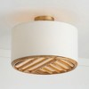 The airy and artistic Soleil Dual Mount beautifully brings the outdoors in. Whether hung as a semi-flush or pendant, the hand-arranged natural bamboo design contrasts against the white fabric shade creating a capitvating look. DIMENSIONS: Semi-Flush Height: 12.5 ''; Pendant Body Dimensions: 16.75"W x 14"H; Max Hanging Height: 135.75''; Includes 10' of chain and 15' of wire. DETAILS: Artisan made and handcrafted out of natural stripped, clear-coat bamboo. Natural variation will occur. Dual mount convertible optional small rod to hang as a semi-flush or 10 feet of chain to hang as a pendant are both included. FINISH: This light, honey-toned gold has a slightly shiny matte finish that is smooth to the touch. BULBS: Designed to be dimmable and LED/CFL/Incandescent bulb compatible, this fixture uses 3 - 60 Watt (max) E12 Candelabra base bulbs (not included). FEATURES: Rated for dry locations; includes a 1-Year Manufacturer Warranty.