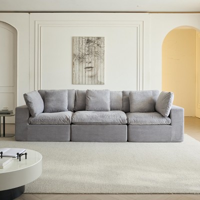 Captiva Designs 124" L-Shaped Sectional Sofa with Ottoman and 3 Pillows, 4-Seater Modular Cloud Couch for Living Room, Corduroy Fabric Gray 3-Seat