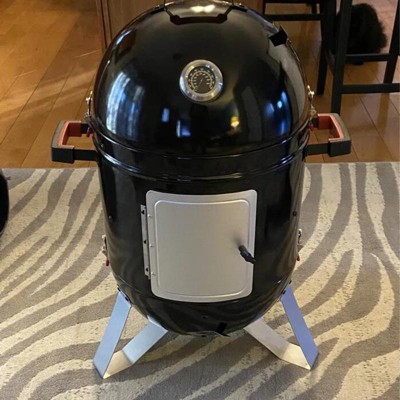 Captiva Designs 18" Vertical Dual Layer Charcoal Smoker Grill with Porcelain-Enameled Smoking Chamber GR14 Black: Outdoor Cooking