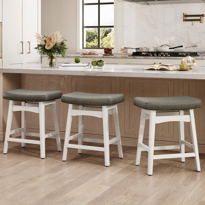 Captiva Designs 24 inch Counter Height Bar Stool with Gray Faux Leather Cushion and Sturdy Metal Frame, Set of 3