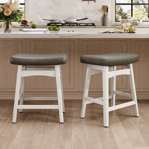 [Captiva Designs] Designed for lasting comfort, the Captiva Designs 24-inch bar stool features a four-layer seat system—synthetic leather, high-resilience foam, elastic band, and reinforced lining—for optimal support. Its sturdy solid wood frame ensures durability, while the contoured seat promotes ergonomic posture to reduce fatigue. The integrated footrest and non-slip pads add thoughtful convenience, protecting floors and enhancing stability. With compact dimensions, it fits standard 34–38" counters perfectly. Assembles in just 10 minutes—ready to elevate your kitchen or bar with timeless style and unmatched comfort. The ideal blend of function and elegance for your home.