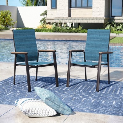 Captiva Designs 2pc Outdoor Dining Steel Blue Sling Arm Chairs with 360 Degree Swivel