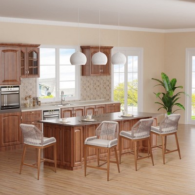 Captiva Designs 2pc Outdoor Patio Quick-dry Aqua Textilene Sling High Bar Steel Stools with Armrests