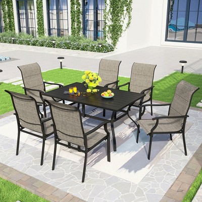 Captiva Designs 9pc Patio Dining Set with Spacious Slat-top Square Metal Table & Beige Rattan Chairs