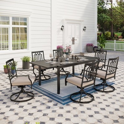 - Comfortable Cushioned Chairs: The chairs come with soft cushions, offering a comfortable and inviting seating experience, perfect for long outdoor meals and gatherings.