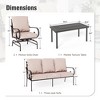 Create a stylish and inviting outdoor retreat with this modern sofa set. The sleek black metal frame features a distinctive open-back design with elegant curve patterns for a sophisticated look. The wide and deep seats, paired with cushions that offer both support and comfort, provide an ideal space for long, relaxing outdoor moments.Crafted with high-quality, weather-resistant materials, this set is designed to withstand the elements, offering lasting beauty and durability season after season.