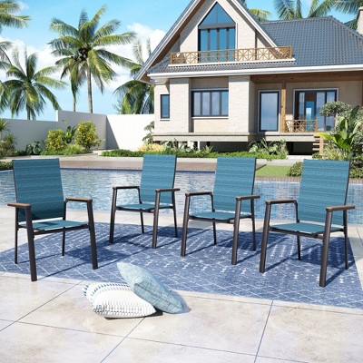 Captiva Designs 4pc Outdoor Dining Steel Blue Sling Arm Chairs with 360 Degree Swivel