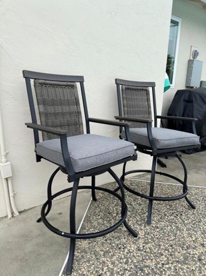 Absolutely love this dining set. The stools are comfortable, and the swivel feature is a nice touch. It’s held up well in the rain too. 5 stars!