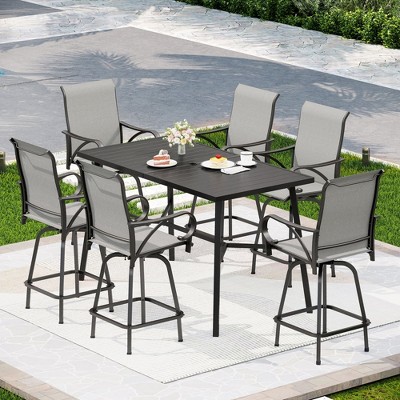 Captiva Designs 5pc Outdoor Patio Metal Bar Height Table & Bar Swivel Chair with Cushion and Armrest