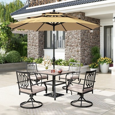 - Complete Patio Dining Set: This set includes everything you need for outdoor dining, with 1 dining table and 4 comfortable armrest chairs, providing ample seating for family and friends.
