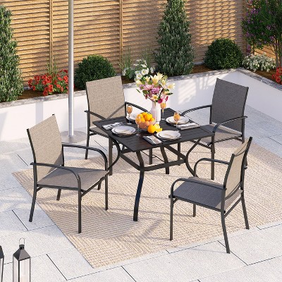 Captiva Designs 5pc Outdoor Patio Dining Set with Steel Frame Table & Quick-dry Sling Fixed Chairs