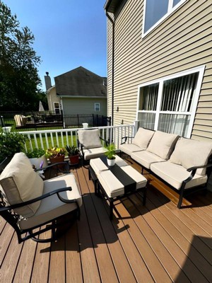 At first, I was a little confused because it arrived in 4 separate boxes on different days, but I absolutely love this set! It’s way more durable than wicker, and the cushion covers are super comfy. The size fits my space perfectly—couldn’t be happier with it!