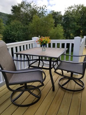 Guests appreciate the quality and comfort of this patio furniture set, highlighting its stylish design and functional features. Many found the assembly process straightforward, with clear instructions provided. The swivel and rocking capabilities of the chairs are particularly praised, making them a delightful addition to outdoor spaces. Overall, this set offers great value for money, enhancing outdoor dining experiences and relaxation.