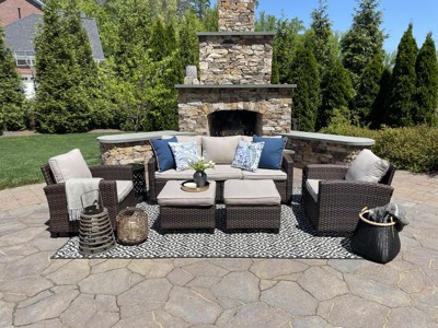 Create a luxurious outdoor haven with our premium furniture set, crafted for both style and comfort. This set includes 2 single sofa, 2 versatile ottomans, a loveseat and a spacious 3-seat sofa, offering ample seating for family and friends. The wide, ergonomic seats are designed for long-lasting comfort, whether you’re hosting guests or unwinding in peace. Built to last, this set combines elegance and durability, making it the perfect choice for any outdoor gathering.