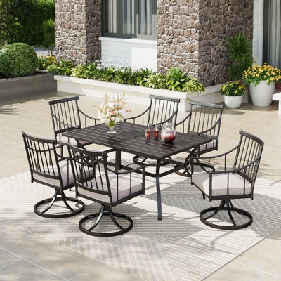 Sophia & William 37" Metal Steel Slat Patio Table with Umbrella Hole