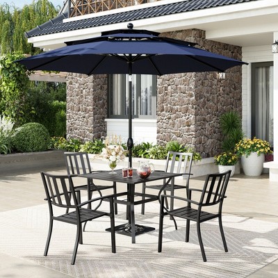 Captiva Designs 6pc Outdoor Patio Steel Dining Table & Swivel Metal Chairs & Market Umbrella