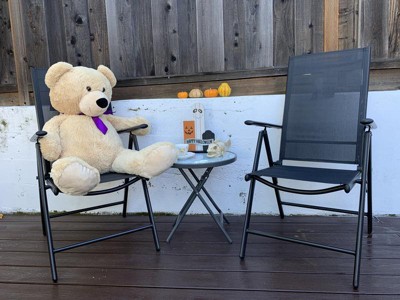- Compact and Foldable Chairs: The lightweight aluminum-framed chairs, with breathable Black textilene sling fabric and high backs, are designed to fold easily, requiring no assembly and saving space, time, and effort.