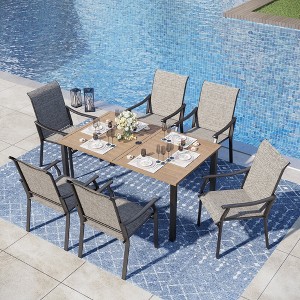 - Complete 7-Piece Set: A comprehensive 7-piece dining set, conveniently delivered in 4 parcels, featuring a dining table and 6 armrest chairs.
