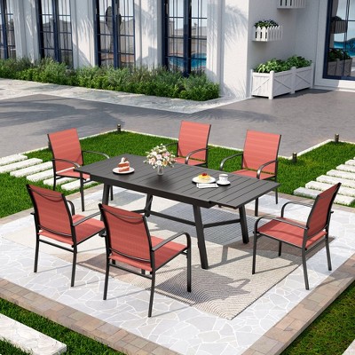 Captiva Designs 7pc Outdoor Patio Geometric Pattern Rectangular Steel Dining Table & Blue Sling Fixed Chairs