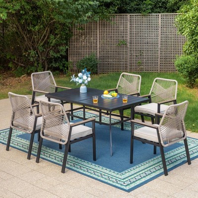 Captiva Designs 7pc Outdoor Patio Slat-top Rectangle Dining Steel Table & Foldable Arm Chairs