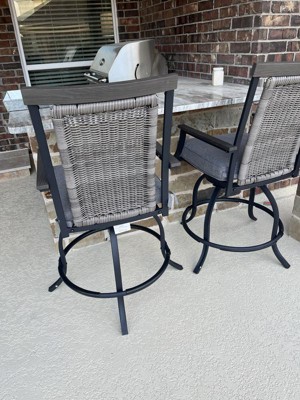 Absolutely love this dining set. The stools are comfortable, and the swivel feature is a nice touch. It’s held up well in the rain too. 5 stars!