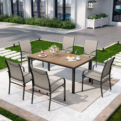 Captiva Designs 7pc Outdoor Rectangle Steel Table with Umbrella Hole & Textilene Swivel Chairs