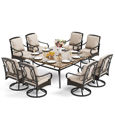 Captiva Designs 7pc Patio Dining Set with Rectangle Steel Table & Rattan Metal Arm Chairs