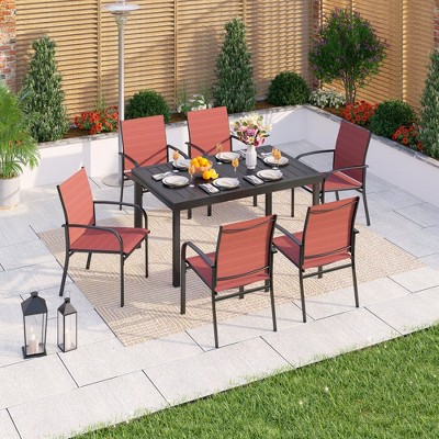 Captiva Designs 7pc Patio Set with Expandable Black Rectangle Steel Dining Table & Sling Fixed Dining Chairs
