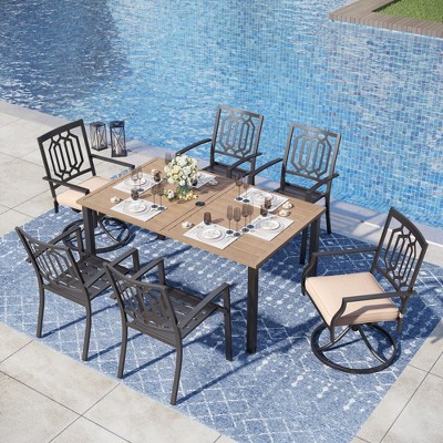 - Complete 7-Piece Dining Set: This versatile set includes a spacious dining table and six comfortable armrest chairs, offering ample seating for your outdoor gatherings.