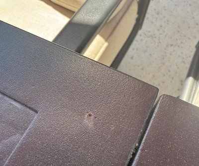 Dent on side of table