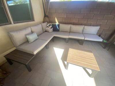 Got this patio set for my back patio. Everyone loves it and thinks it was so expensive! It's modular, so you can set it up however you want. Very comfy and stylish. Totally recommend!