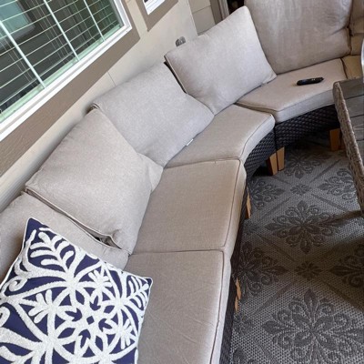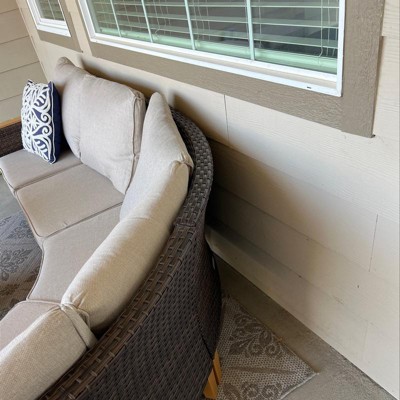 Captiva Designs 8pc Outdoor Wicker Rattan Conversation Set with Curved Sectional Sofa and Ottoman Beige: All-Weather, Rust-Resistant