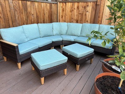 Captiva Designs 8pc Outdoor Wicker Rattan Patio Half-Moon Curved Sectional Sofa Set with Cushioned Ottoman
