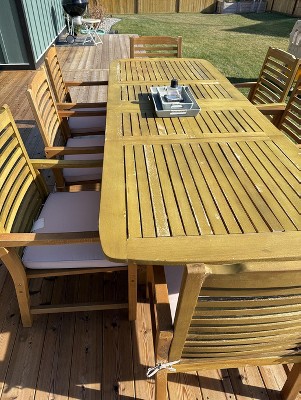 Captiva Designs 9pc Acacia Wood Patio Furniture Set with Expandable Dining Table & Arm Chairs with Cushion