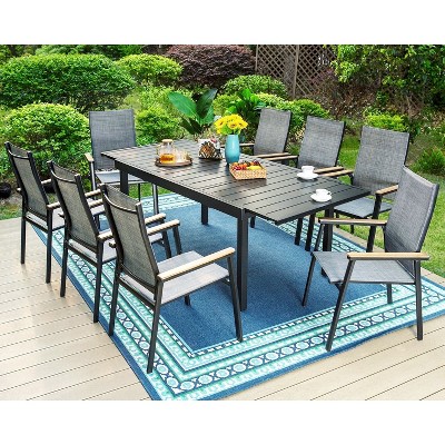 Captiva Designs 9pc Outdoor Expandable Slat-top Steel Rectangle Table & Padded Sling Chairs