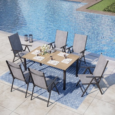 Captiva Designs 9pc Patio Dining Set with Slat-top Adjustable Steel Rectangle Table & Sling Foldable Chair