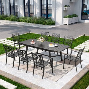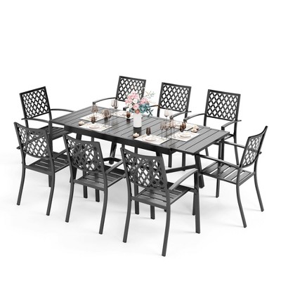 Captiva Designs 9pc Patio Dining Set with Slat-top Adjustable Steel Rectangle Table & Steel Chairs