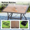 - Wood-Like Table Top: The table boasts a wood-like tabletop, adding a touch of natural elegance to your patio or garden. It's not only attractive but also easy to clean and maintain.