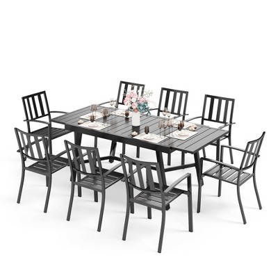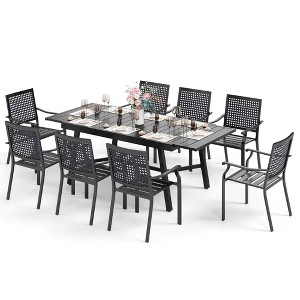 Captiva Designs 9pc Outdoor Patio Adjustable Steel Rectangle Dining Table & Stackable Metal Chairs