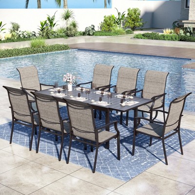 Captiva Designs 9pc Patio Rectangle Expandable Metal Dining Table & Rattan Chairs with Removable Cushions