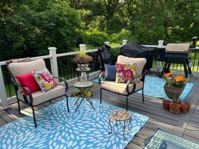 It's a fabulous online shopping. Pretty easy to put together; the frame of the chairs looks sturdy, the seat is wide, the cushions are thick and filled with plenty of solid foam, supporting the body well. I placed it on my deck, and paired with suitable waist pillow, fitted the outside perfectly and I felt very comfortable when sitting in the chairs. I would highly recommend this chair.