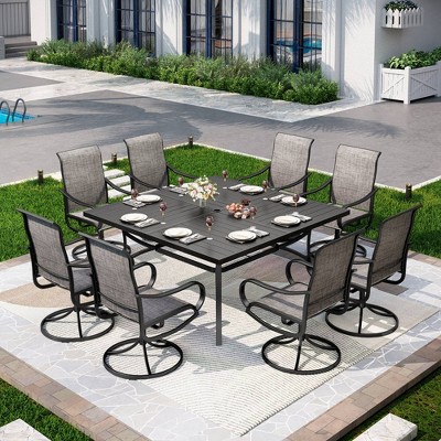 - Complete Patio Dining Set: This practical patio dining set consists of 1 square dining table and 8 high back armrest chairs, providing a comprehensive and convenient outdoor dining solution.